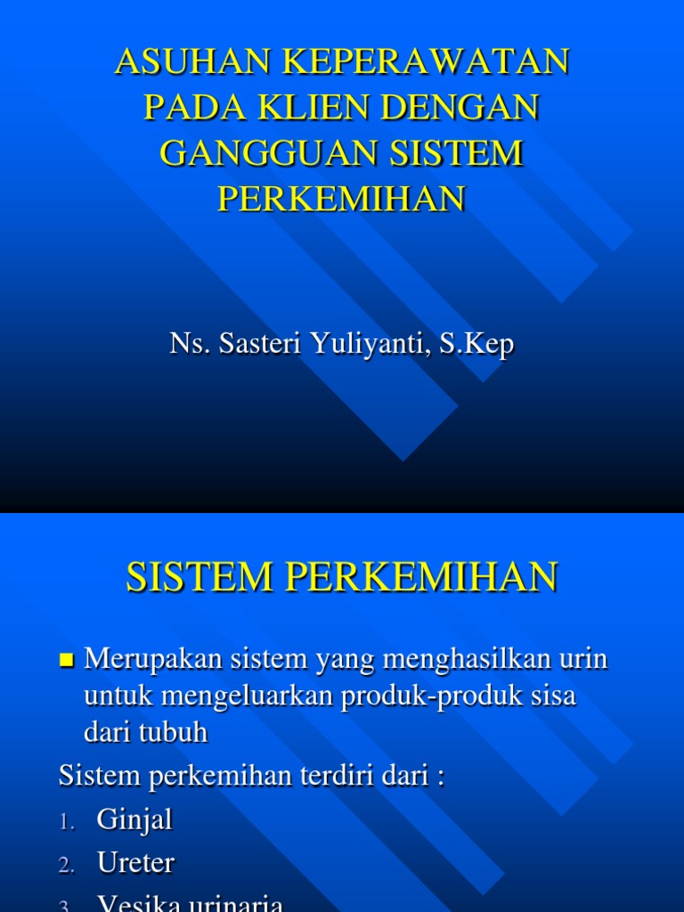 Selanjutnya, kristalisasi berlangsung terns mengendap pada organ saluran kemih dan menjadi batu saluran kemih. Sinus ginjal, yaitu rongga berisi lemak yang terbuka pada hilus. Organ kandung kemih tersusun atas 3 (tiga) lapisan otot destruyor yang membuat rajutan. Organ dalam sistem perkemihan selanjutnya setelah ginjal adalah ureter. Makalah gangguan sistem perkemihan bab i pendahuluan 1.1 latar belakang sistem perkemihan merupakan sistem hanya pada kasus luka, infeksi atau penyakit pada organ dari saluran kemih, fungsinya menjadi terganggu dan karenanya menganggu biokimia dari aliran bawah.